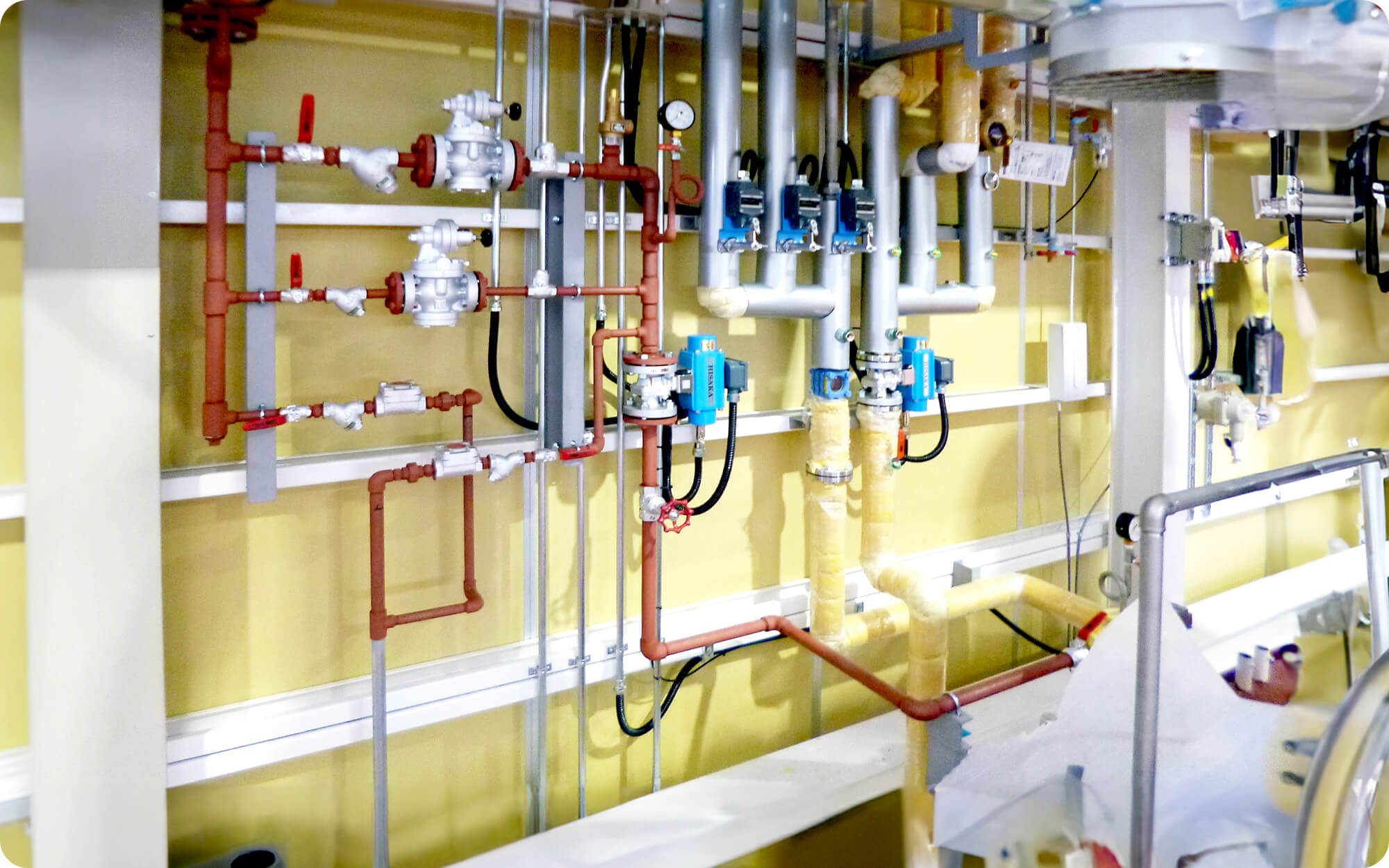 化学品工場向け 製造設備への冷温水・蒸気配管工事